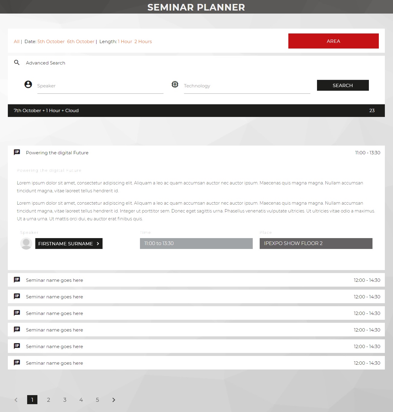 We wanted to create a fresh look for the Tech Expo, the challenge came about as we were not dealing with unfinalised content that was yet to be decided. I would have to build multiple elements such as tabs, galleries and video players without knowing the real content that would go in.