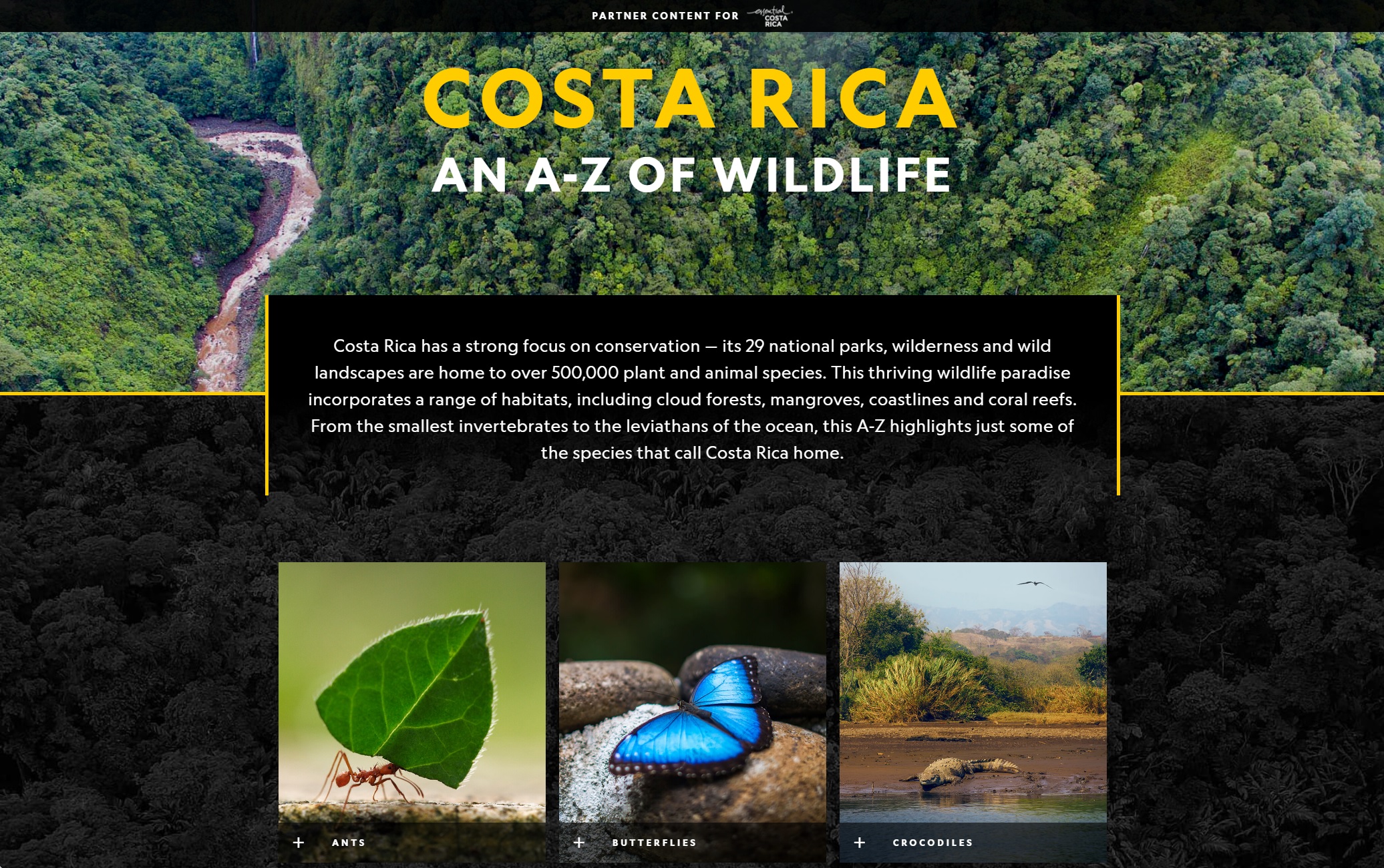 Developing a stylish microsite to showcase Costa Rica's wildlife