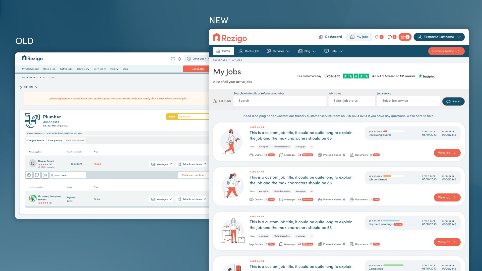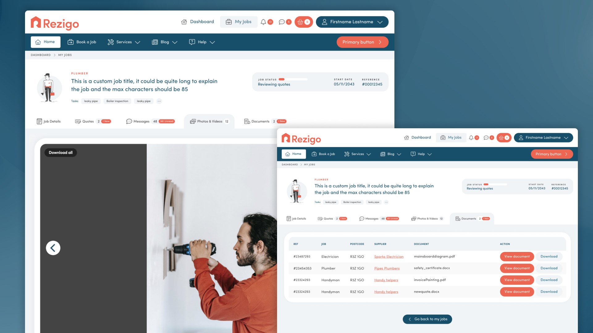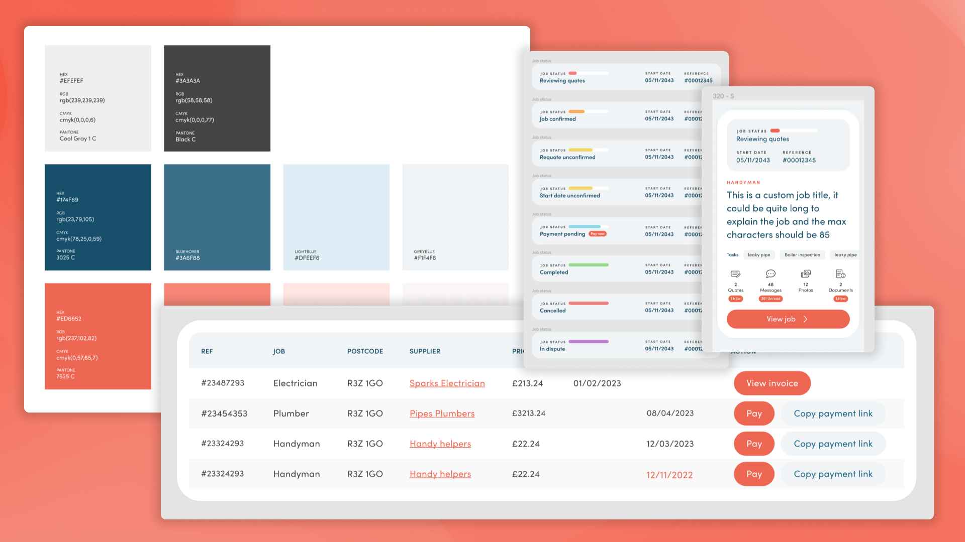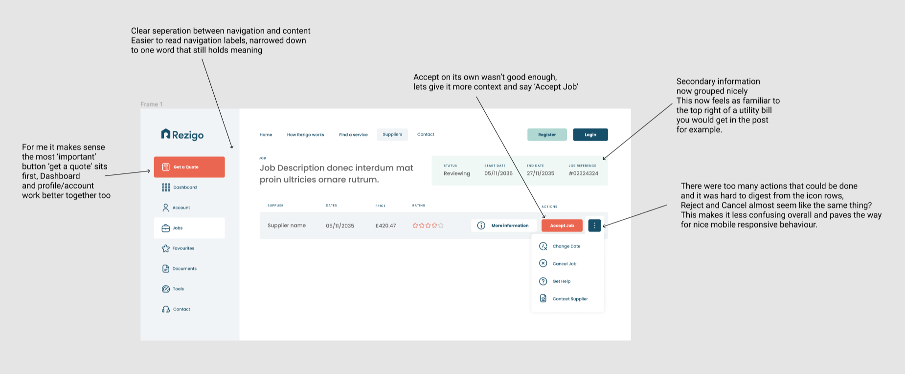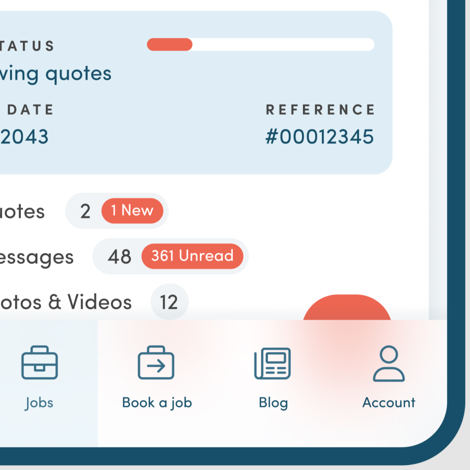 I moved all the job details onto a new page, resulting in huge improvements across the board. Each job would now have its own individual URL, this way the main 'Jobs directory' was decluttered and all the information was broken down into neat tabs. This page shows quotes from tradespeople that the user can then use to decide which supplier to book.