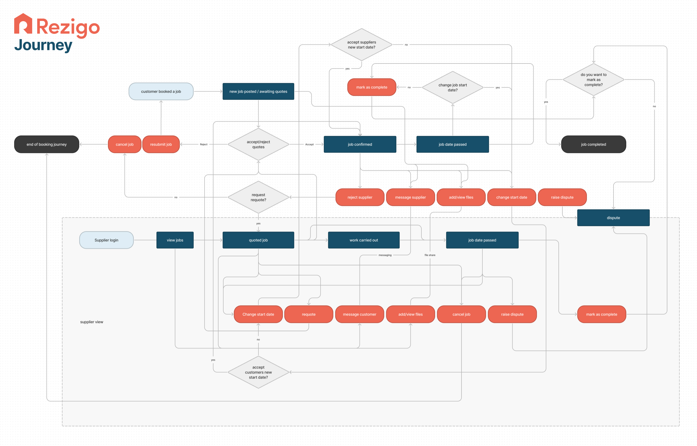 I wanted to get a deeper understanding of the journey a typical user would take, and all the options and variables that they could face. I designed this flow diagram based on the current user journey, hoping to gain insight into approaches to streamline the flow resulting in a quicker and more seamless experience for the user.