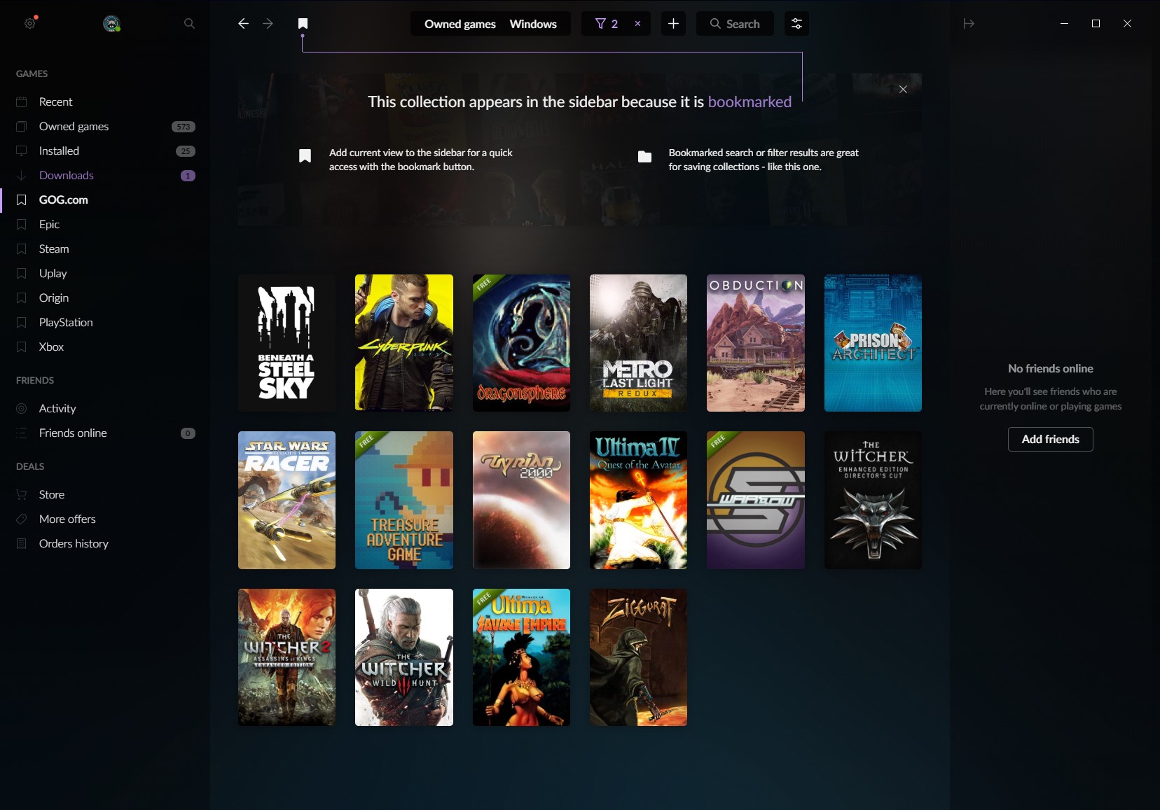 I wanted to create an interface that felt familiar to them, and so I looked to popular platforms such as Steam and GOG Galaxy for inspiration, these were game launchers that most likely 99% of users would have installed on their system and already use every day. Mimicking layout based on this would prove to work effectively, the display of game covers bares resemblance to mod tiles.