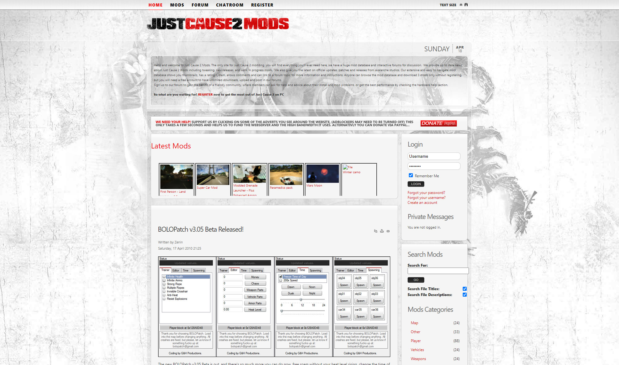 In 2014, I had to convert the basic Joomla site for Just Cause 2, into a fully fledged community site with various communication tools, such as private messaging, forums, live chat and commenting. The main attraction had to be the mod database, which would have extensive search filters, images, videos and a rating system for uploaded files. The site would have to become a network and cater for many more games.