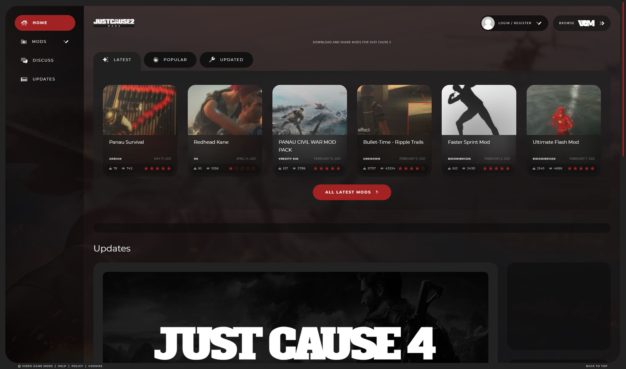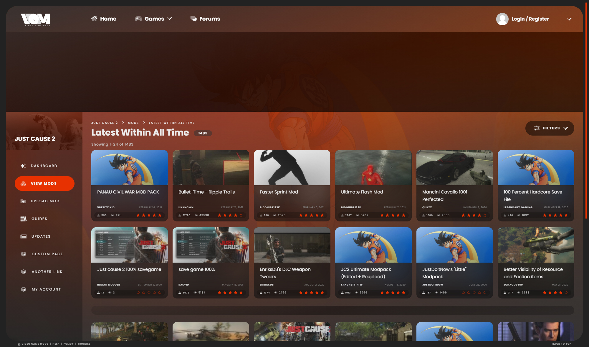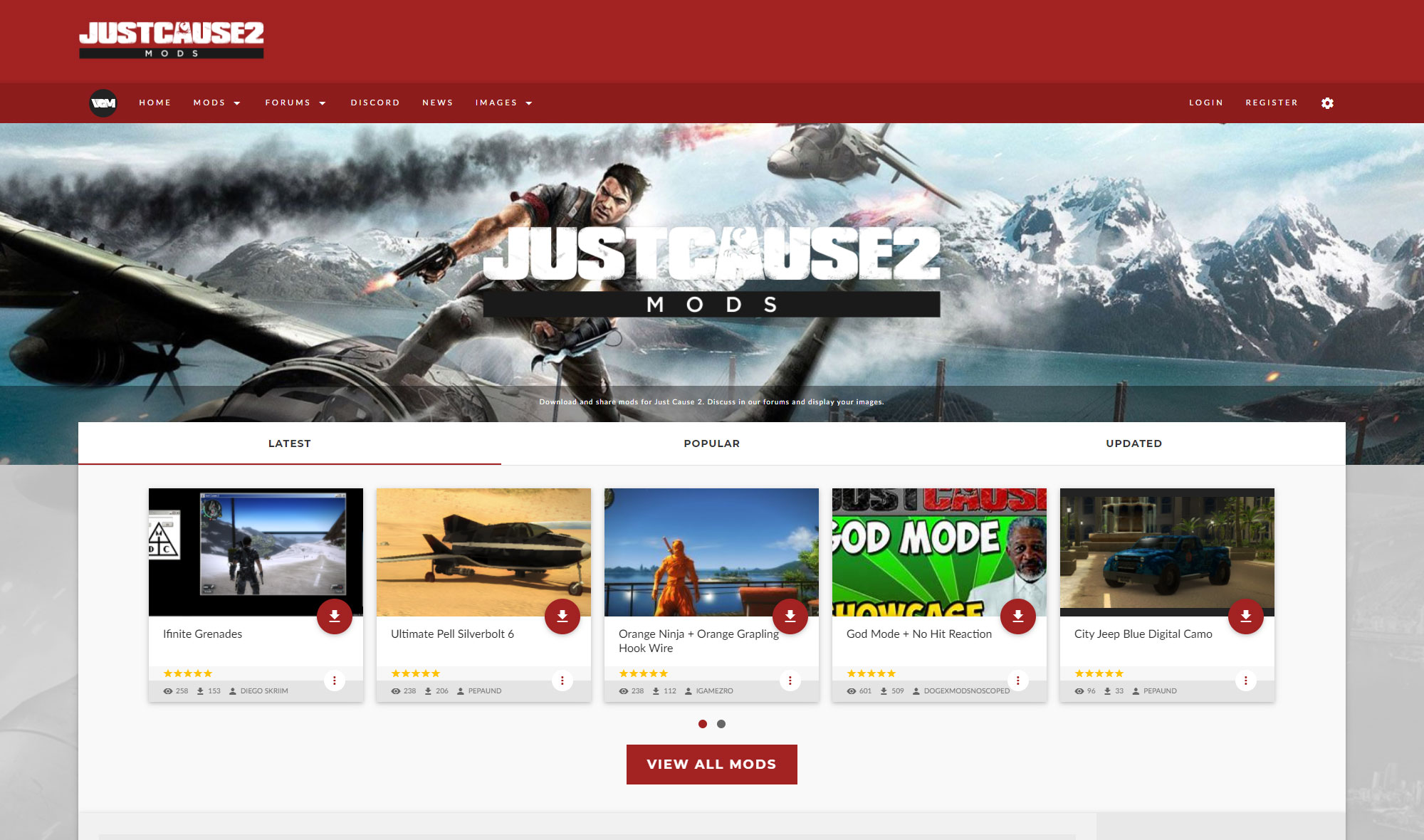 Total rework of all design and backend code with a vast amount of custom PHP written to achieve search filtering and extra functionality for member management. The theme was built using Google Material design language (Materialize CSS). The sites still used their own unique domain name 'justcause2mods.com' etc. The user database was shared among seperate websites.